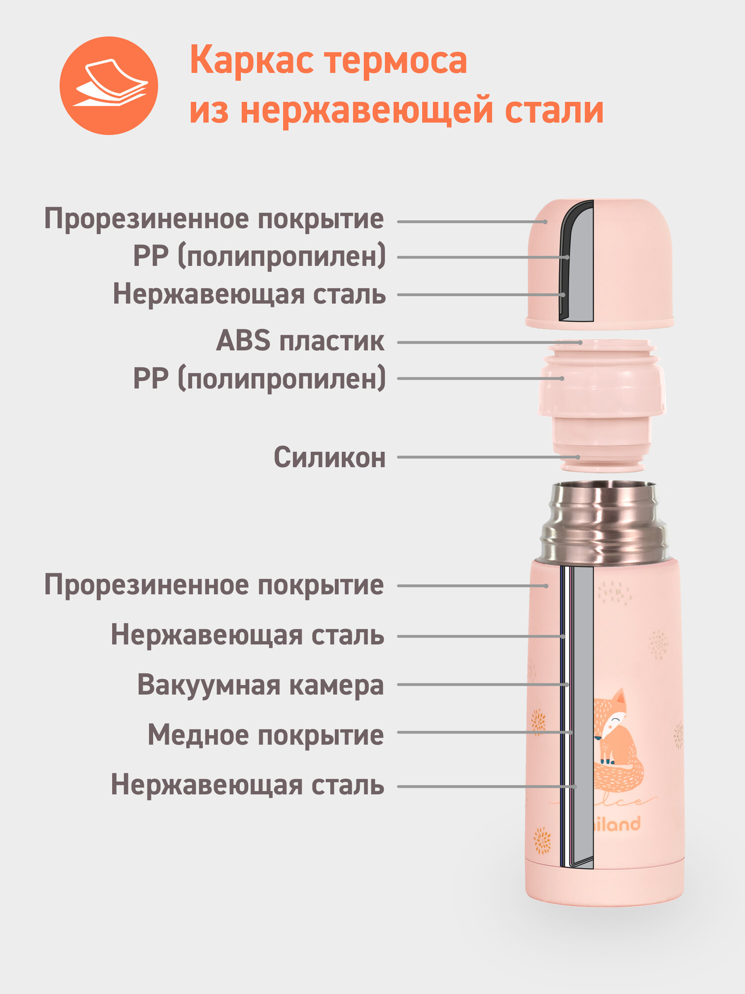 Купить Термос детский для воды, чая и других напитков Miniland Thermy Dolce, розовый с лисенком, маленький, 350 мл с доставкой по всей России.