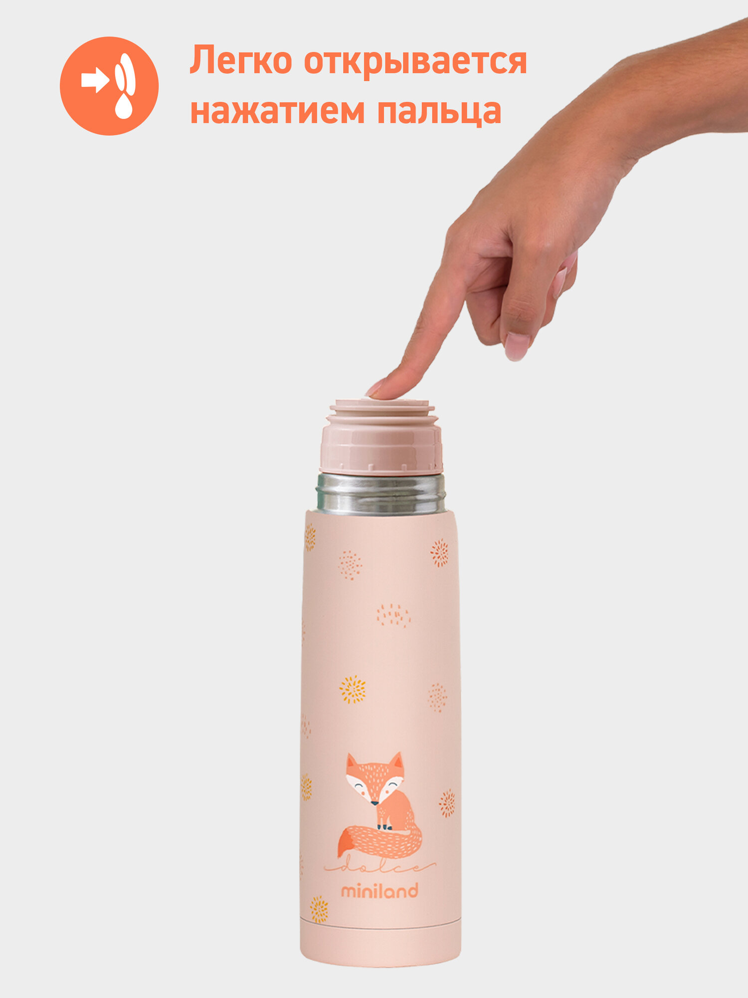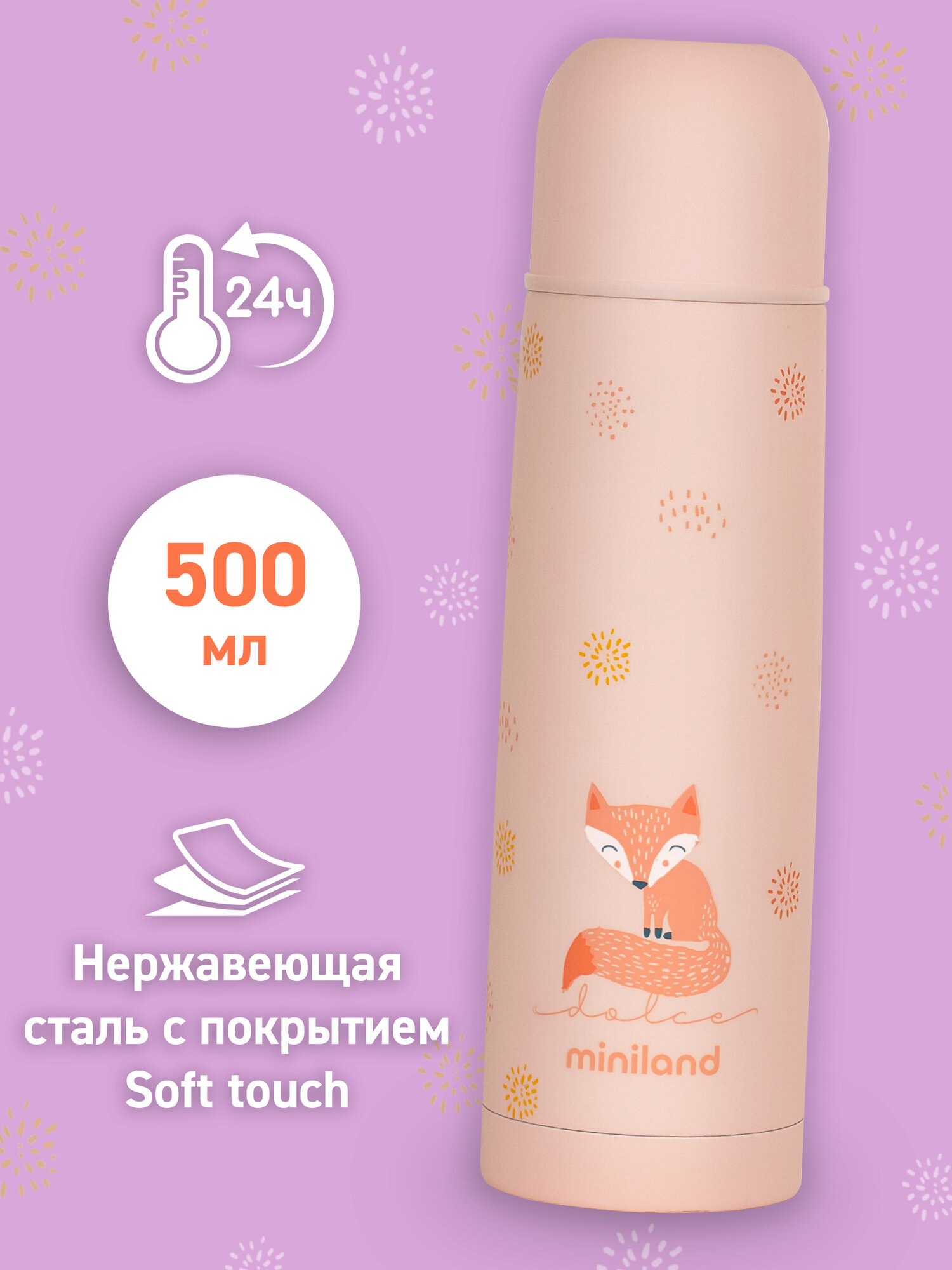 Термос детский для воды, чая и других напитков Miniland Thermy Dolce, розовый с лисенком, 500 мл: сравнение цен, характеристики, фото, актуальное наличие и цены.