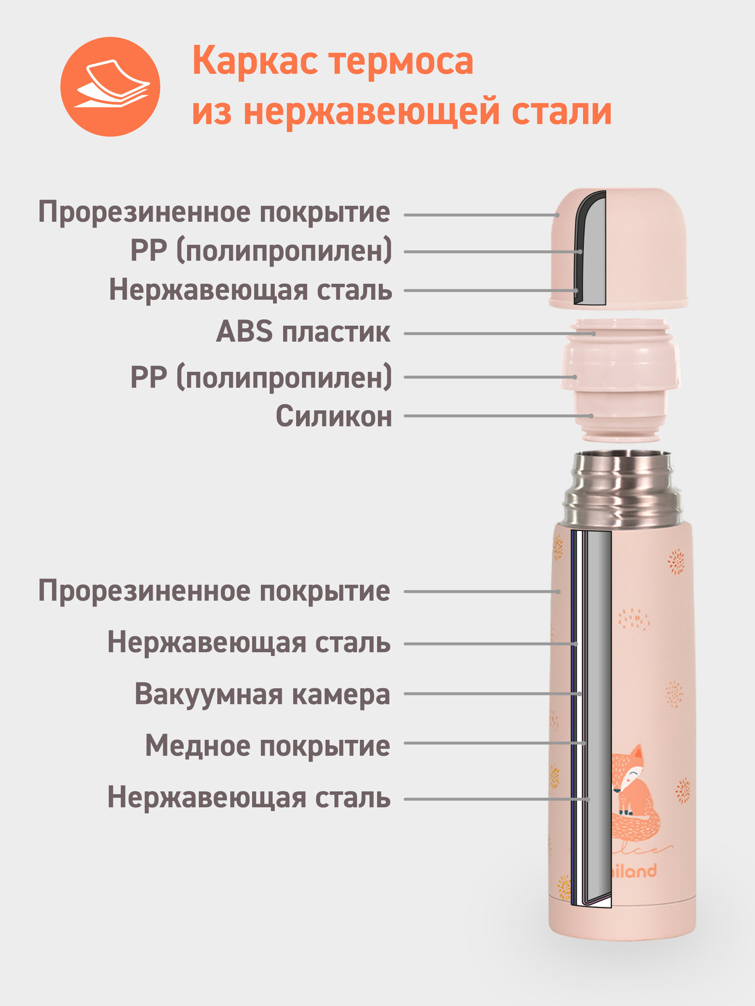 Купить Термос детский для воды, чая и других напитков Miniland Thermy Dolce, розовый с лисенком, 500 мл с доставкой по всей России.
