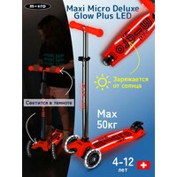 Купить Детский трехколесный самокат Maxi Micro Deluxe Glow Plus (светится в темноте) LED красное сияние, со светящимися колесами и платформой с доставкой по всей России.