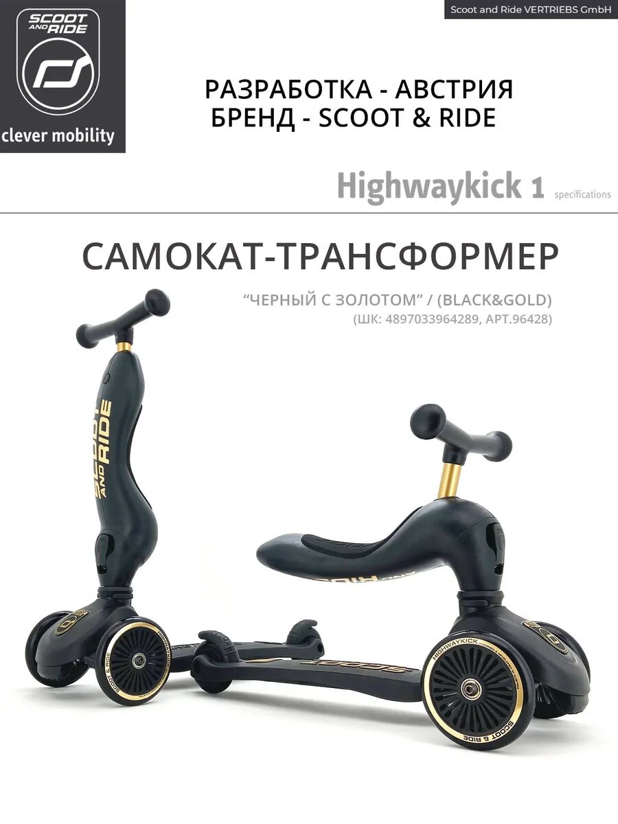 Детский трехколесный самокат-трансформер компании "Scoot & Ride Vertriebs GmbH" (Австрия) от официального дистрибьютора в РФ.
