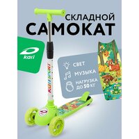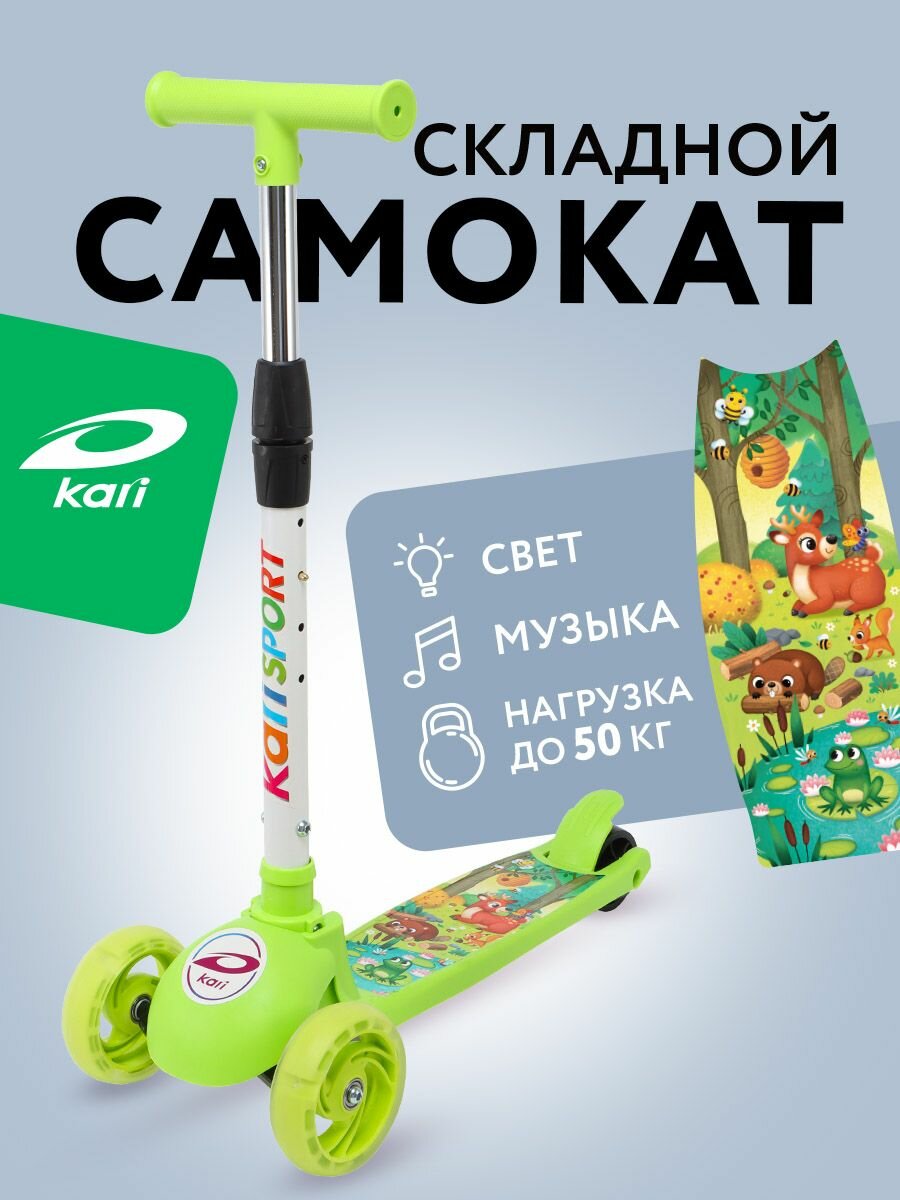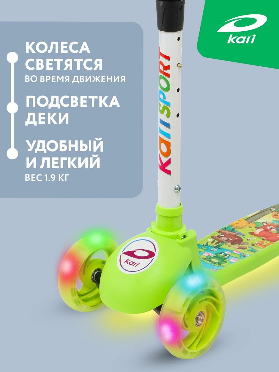 Купить Детский трехколесный складной самокат kari sport с регулируемым рулем, светящимися колесами и подсветкой деки с доставкой по всей России.