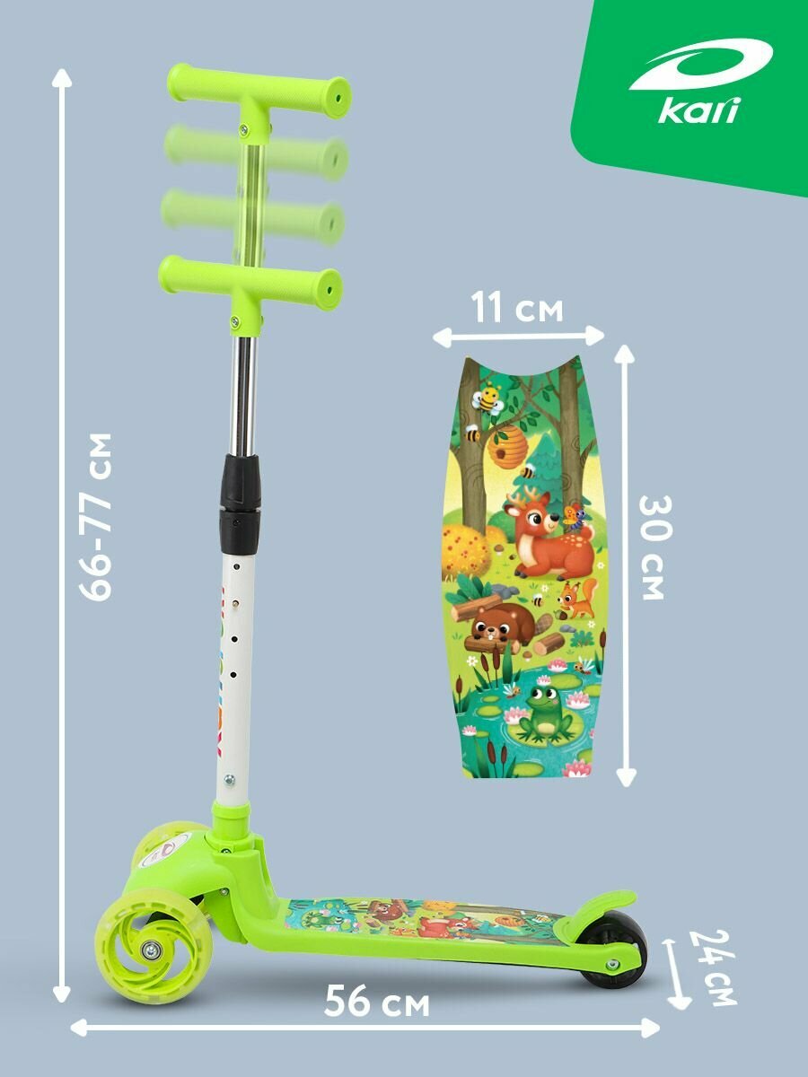 Детский трехколесный складной самокат kari sport с регулируемым рулем, светящимися колесами и подсветкой деки: сравнение цен, характеристики, фото, актуальное наличие и цены.