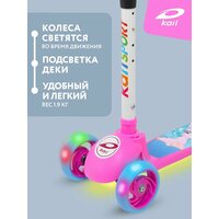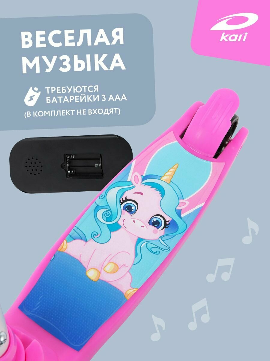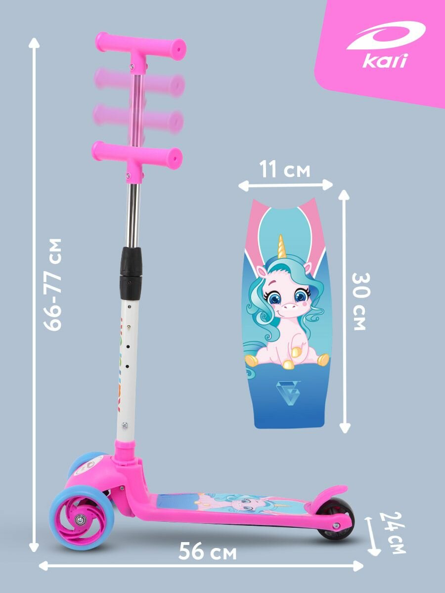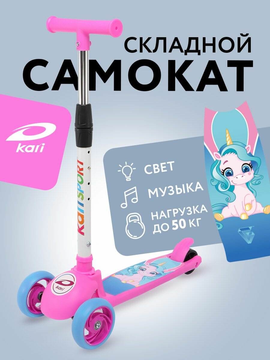 Купить Детский трехколесный складной самокат kari sport с регулируемым рулем, светящимися колесами и подсветкой деки Единорог, цвет розовый, голубой с доставкой по всей России.