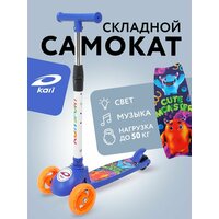 Купить Детский трехколесный складной самокат kari sport с регулируемым рулем, светящимися колесами, музыкой и подсветкой деки с доставкой по всей России.