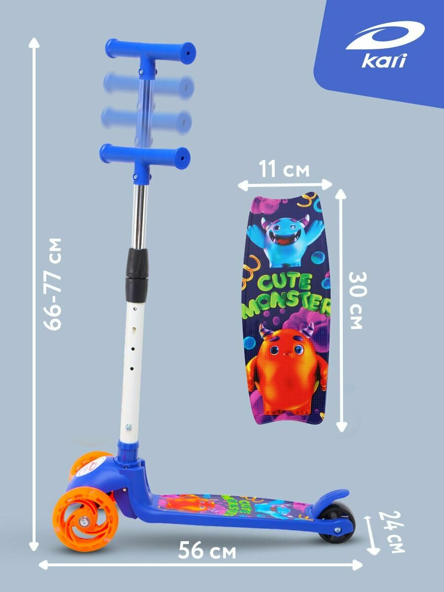 Детский трехколесный складной самокат kari sport с регулируемым рулем, светящимися колесами, музыкой и подсветкой деки: сравнение цен, характеристики, фото, актуальное наличие и цены.