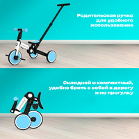 Детский трехколесный складной велосипед с ручкой для родителей Kiddo Craze