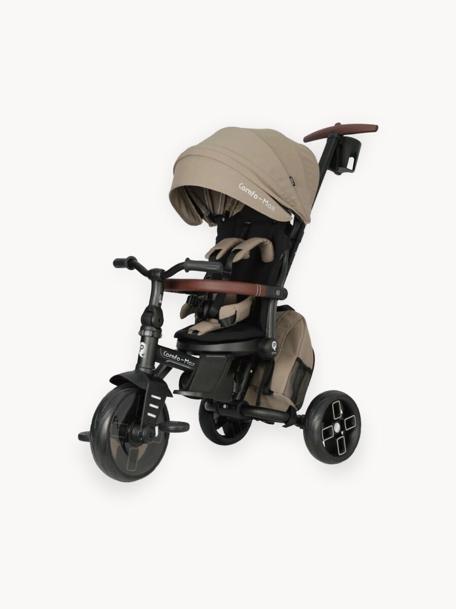 Трехколесный велосипед Qplay Comfo Max — детский велосипед - коляска для ребенка от 10 месяцев до 6 лет. 8 вариаций трансформаций позволит адаптировать велосипед под потребности возраст вашего малыша. Этот детский транспорт идеально подходит для прогулок по городу и паркам, сочетая в себе функциональность, безопасность и комфорт для детей.