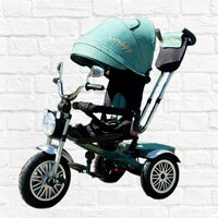 Детский трехколесный велосипед Чоппер для детей до 5 лет. Основные преимущества: Поворот сиденья на 360 градусов Регулировка сиденья вперед-назад Спинка с регулировкой до положения полулежа Трехточечный ремень безопасности Откидная дуга безопасности Мягкая боковая поддержка на спинке сиденья Откидной быстросъемный тент с дополнительным козырьком на молнии На тенте есть смотровое окошко с сеточкой для родителя Регулировка родительской ручки по высоте + быстросъем Откидной руль Светомузыкальная фара с двумя отдельными кнопками. Музыку можно выключить, не дожидаясь, пока она доиграет. (Питание от 3 AA-батареек, в комплект не входят) Дополнительная быстросъемная подставка для ног Складная основная подставка для ног Блокировка педалей, чтобы они стояли на месте, пока колесо вращается Все колеса быстросъемные Корзинка снизу + сумочка на ручке Все колеса надувные Стояночные тормоза на задних колесах Основные характеристики: Возраст: до 5 лет Максимальная нагрузка: до 30 кг: Размер колес: переднее 12" (30 см), задние 10" (26,5 см) Вес 13,5 кг