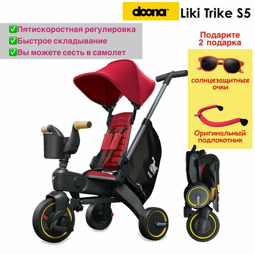 Детский трехколесный велосипед Doona Liki Trike S5, Велосипед детский трёхколесный складной, прогулочная коляска,1-3 года, Огненно-красный: сравнение цен, характеристики, фото, актуальное наличие и цены.
