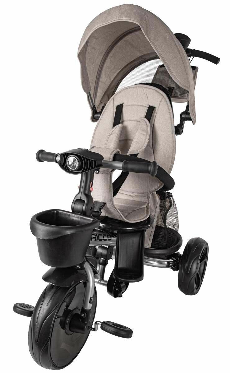 - Комфортное сиденье регулируется вперед-назад, поворотное на 180°. Если ребенок уснул, можно легко развернуть его к себе и перевести сиденье практически в горизонтальное положение, сложив руль.