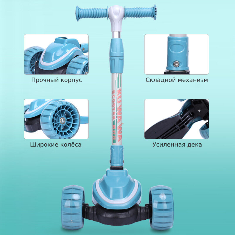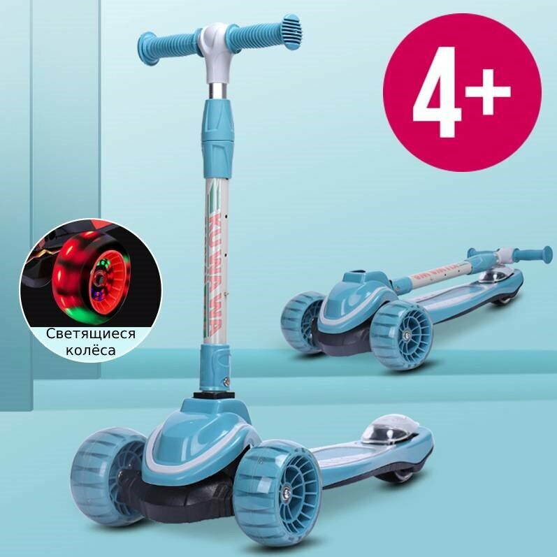 Детский трёхколёсный самокат со светящимися колёсами, для детей от 4-х лет Scooter Maxi Lights Бирюзовый: сравнение цен, характеристики, фото, актуальное наличие и цены.