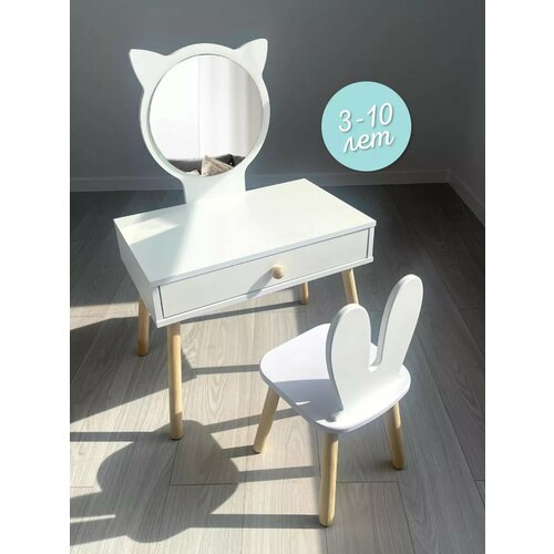 Купить Туалетный Столик детский Котик + стул Зайка от DIMDOM Kids, МДФ белый с доставкой по всей России. Туалетный Столик детский Котик + стул Зайка от DIMDOM Kids, МДФ белый: сравнение цен, характеристики, фото, актуальное наличие и цены.