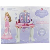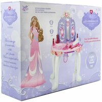 Маленькая красавица будет в восторге от этой игрушки - личный туалетный столик со множеством функций и различными аксессуарами. Можно экспериментировать со стилем, делать разные прически, приглашать в гости подружек и вместе весело проводить время. В комплект входят детали для сборки столика, имитация фена, украшения, заколки, кольца, баночки, расческа, наклейки. С таким игровым набором маленькая принцесса будет развивать чувство стиля и вкуса, воображение, слуховое и зрительное восприятие, мелкую моторику рук и координацию движений.