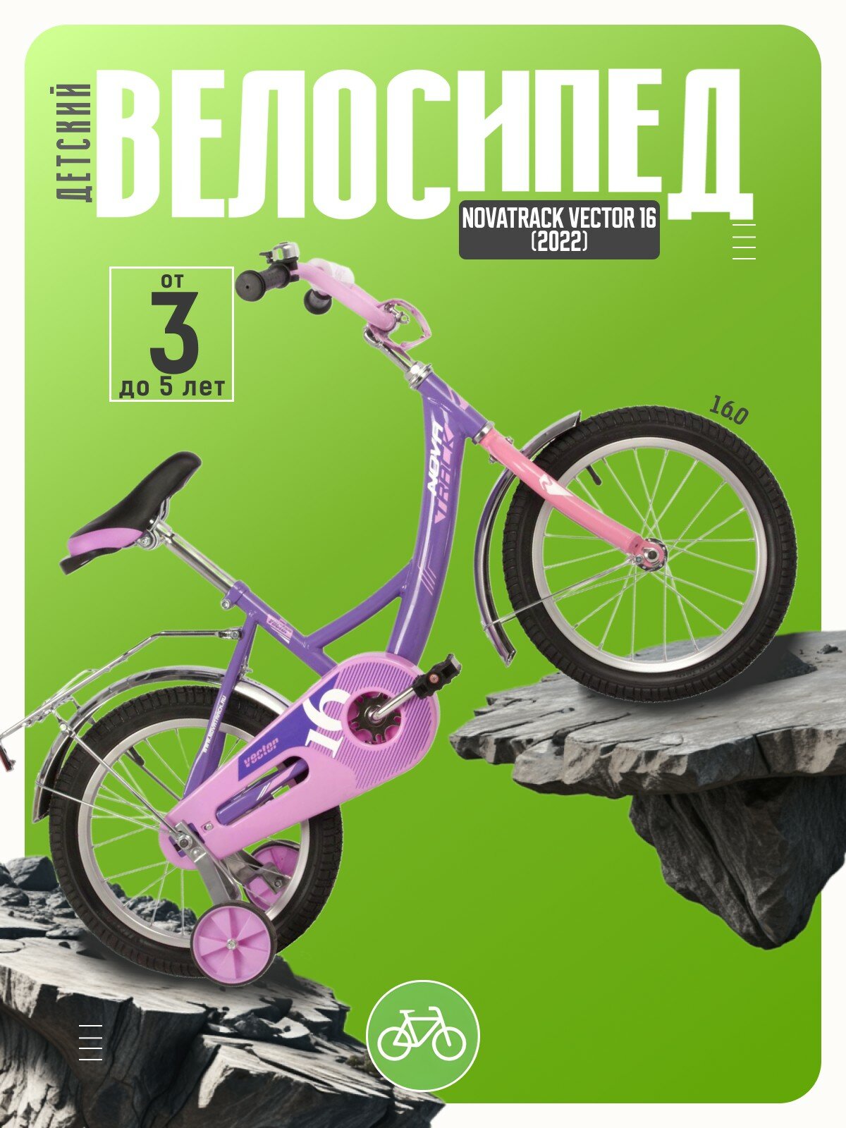 Детский велосипед Novatrack Vector 16, год 2022, цвет Фиолетовый: сравнение цен, характеристики, фото, актуальное наличие и цены.