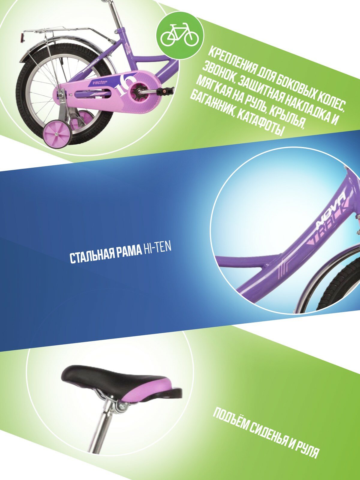 Купить Детский велосипед Novatrack Vector 16, год 2022, цвет Фиолетовый с доставкой по всей России.