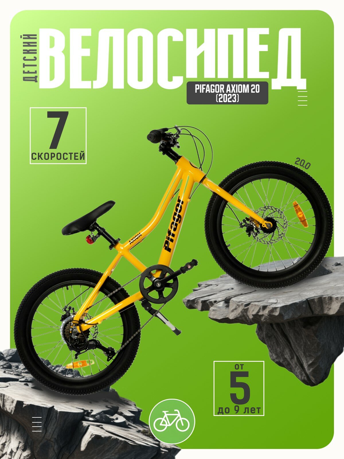 Купить Детский велосипед Pifagor Axiom 20, год 2023, цвет Желтый с доставкой по всей России.