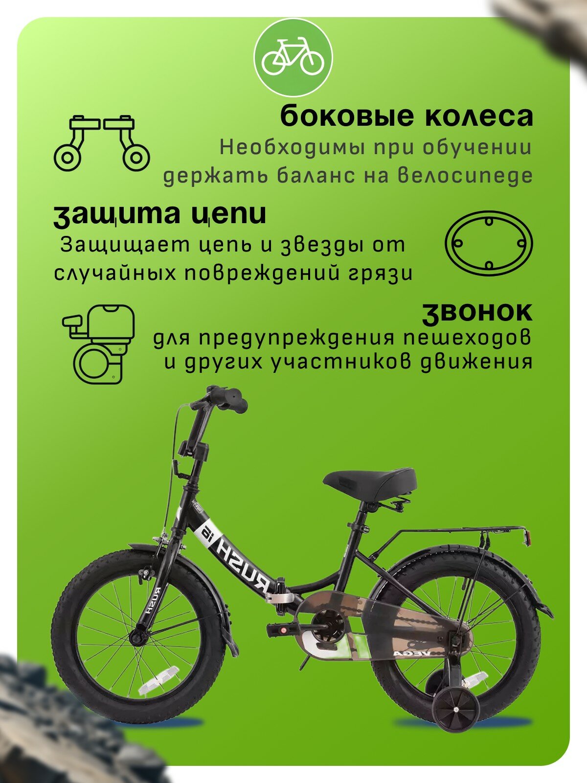 Купить Детский велосипед Rush Hour Vega 160, год 2024, цвет Черный с доставкой по всей России.