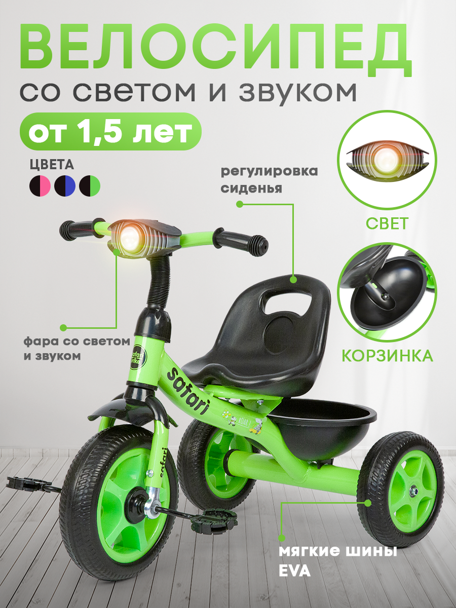 Купить Детский велосипед, трехколесный ТМ Safari trike, с фонариком, зеленый с доставкой по всей России. Детский велосипед, трехколесный ТМ Safari trike, с фонариком, зеленый: сравнение цен, характеристики, фото, актуальное наличие и цены.
