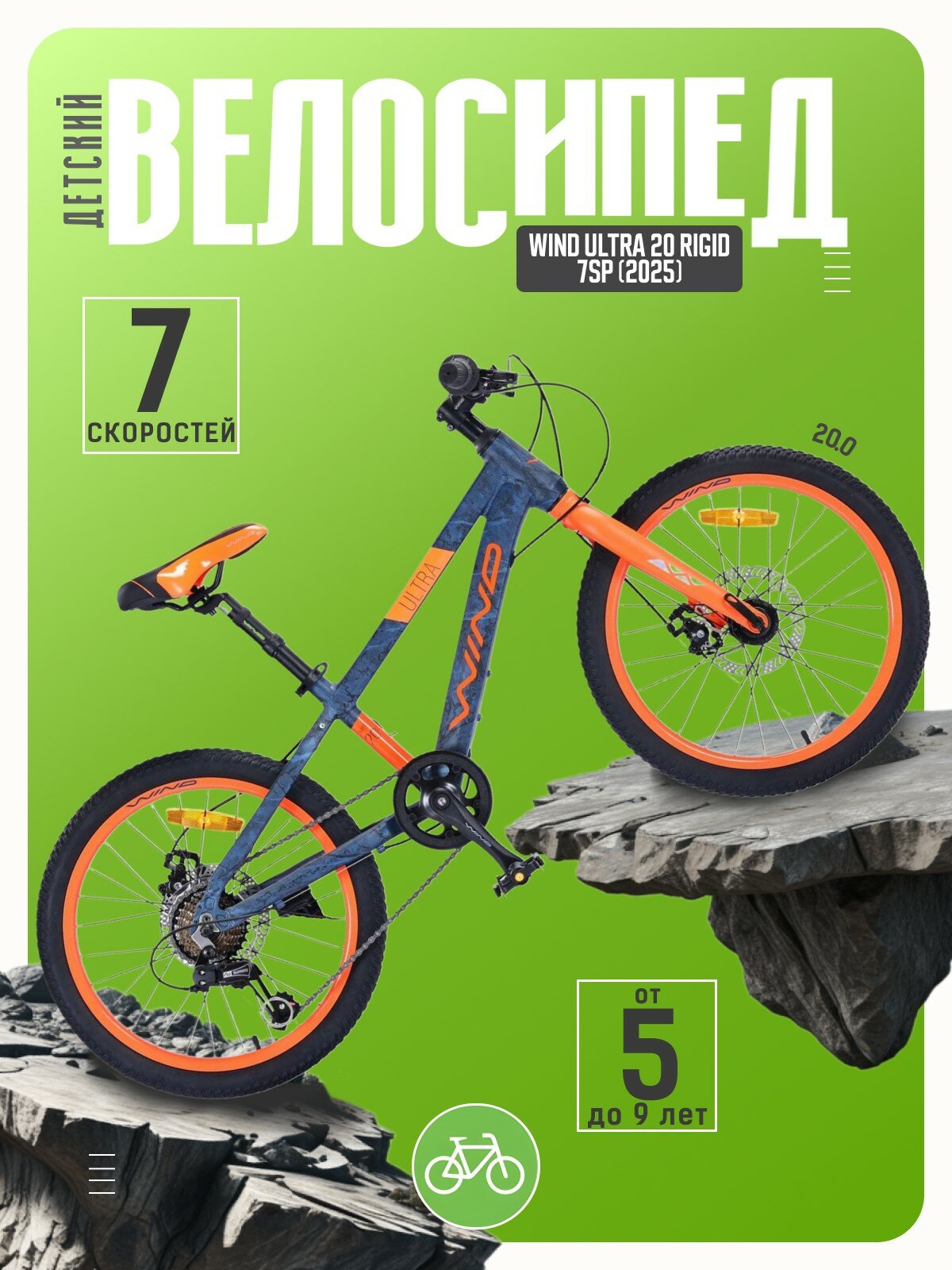Купить Детский велосипед Wind Ultra 20 Rigid 7sp, год 2025, цвет Синий-Оранжевый с доставкой по всей России. Детский велосипед Wind Ultra 20 Rigid 7sp, год 2025, цвет Синий-Оранжевый: сравнение цен, характеристики, фото, актуальное наличие и цены.