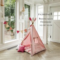 Высота 150 см, основание 115 см,115 см. В вигвам свободно помещается двое деток.