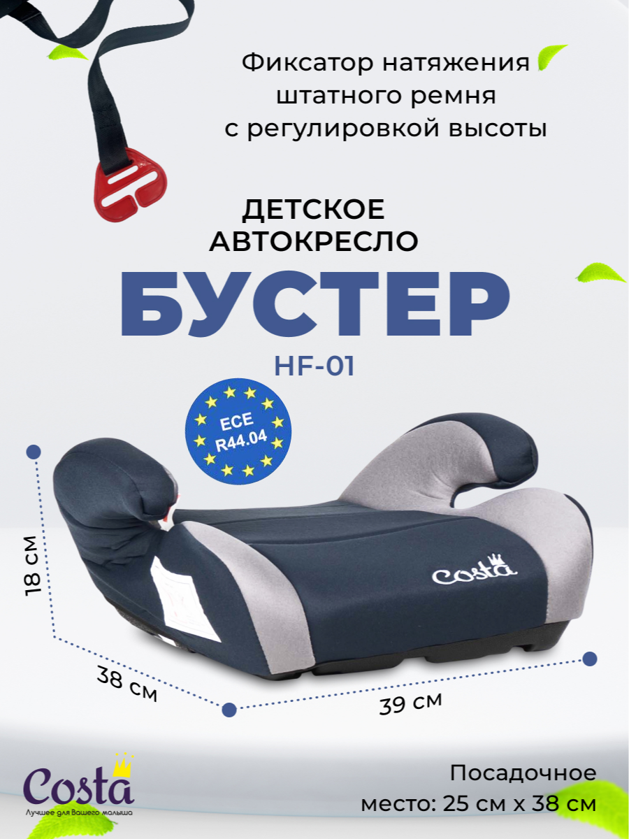 Детское автокресло бустер Costa HF-01, группа 2 и 3, от 4 до 12 лет, вес от 15 до 36 кг, цвет черно-серый: сравнение цен, характеристики, фото, актуальное наличие и цены.