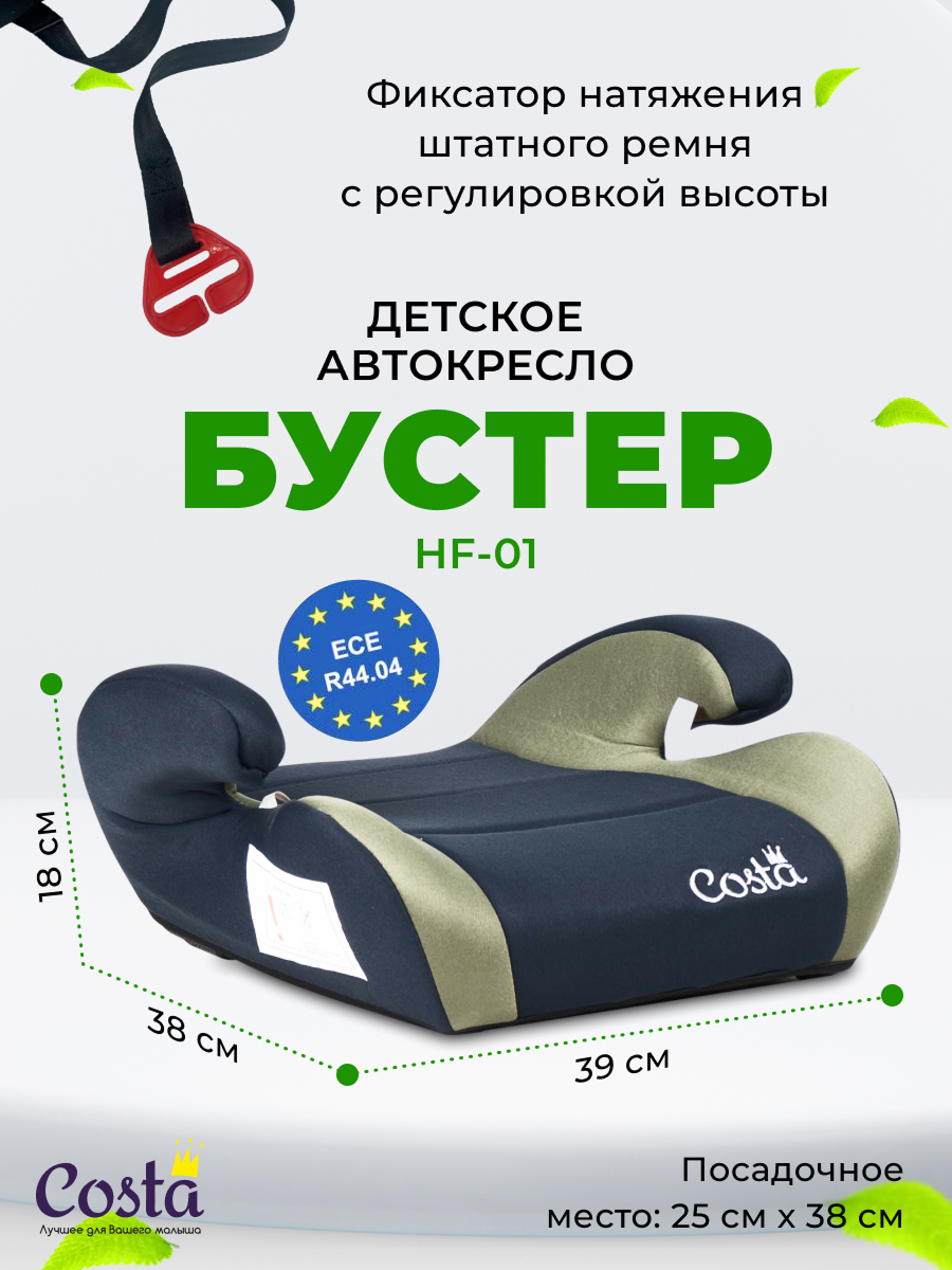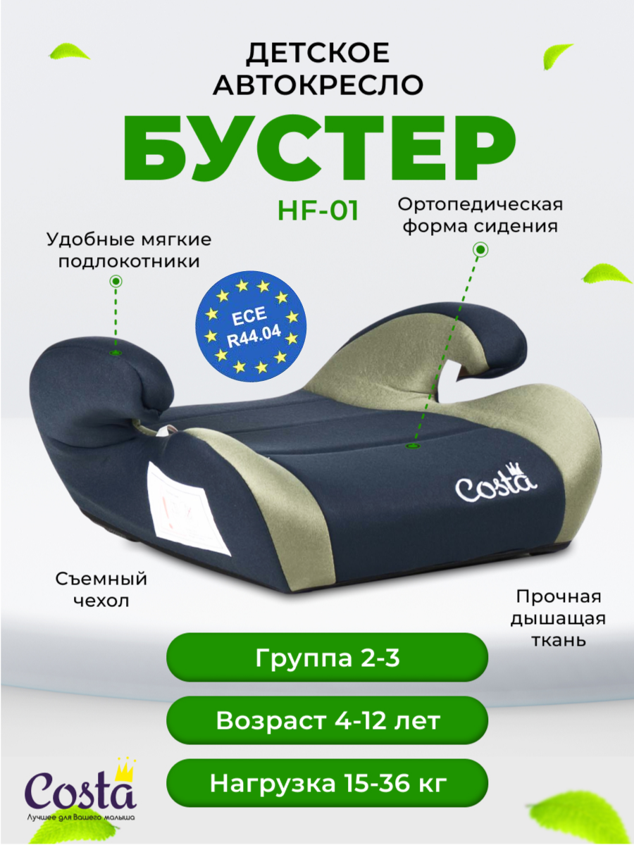 Детское автокресло бустер Costa HF-01, группа 2 и 3, от 4 до 12 лет, вес от 15 до 36 кг, цвет черно-зеленый: сравнение цен, характеристики, фото, актуальное наличие и цены.