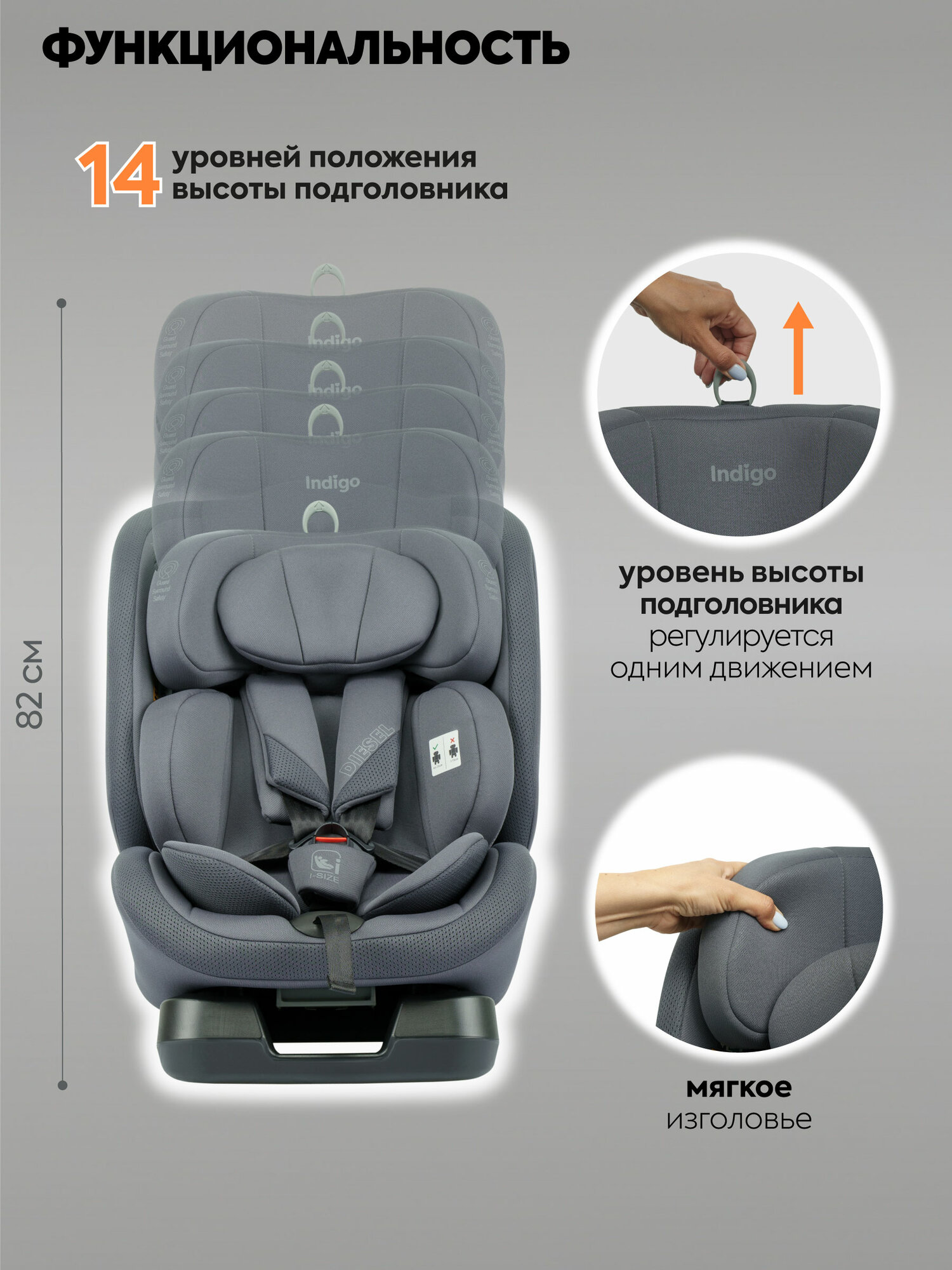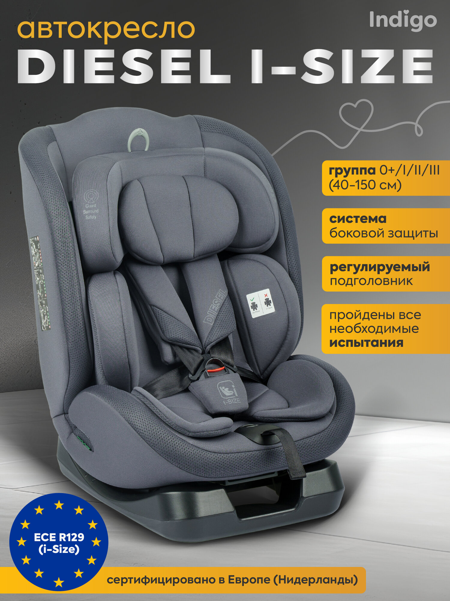Купить Детское автокресло Indigo Diesel I-SIZE, группа 0/1/2/3 (до 36 кг), до 12 лет, серый с доставкой по всей России.