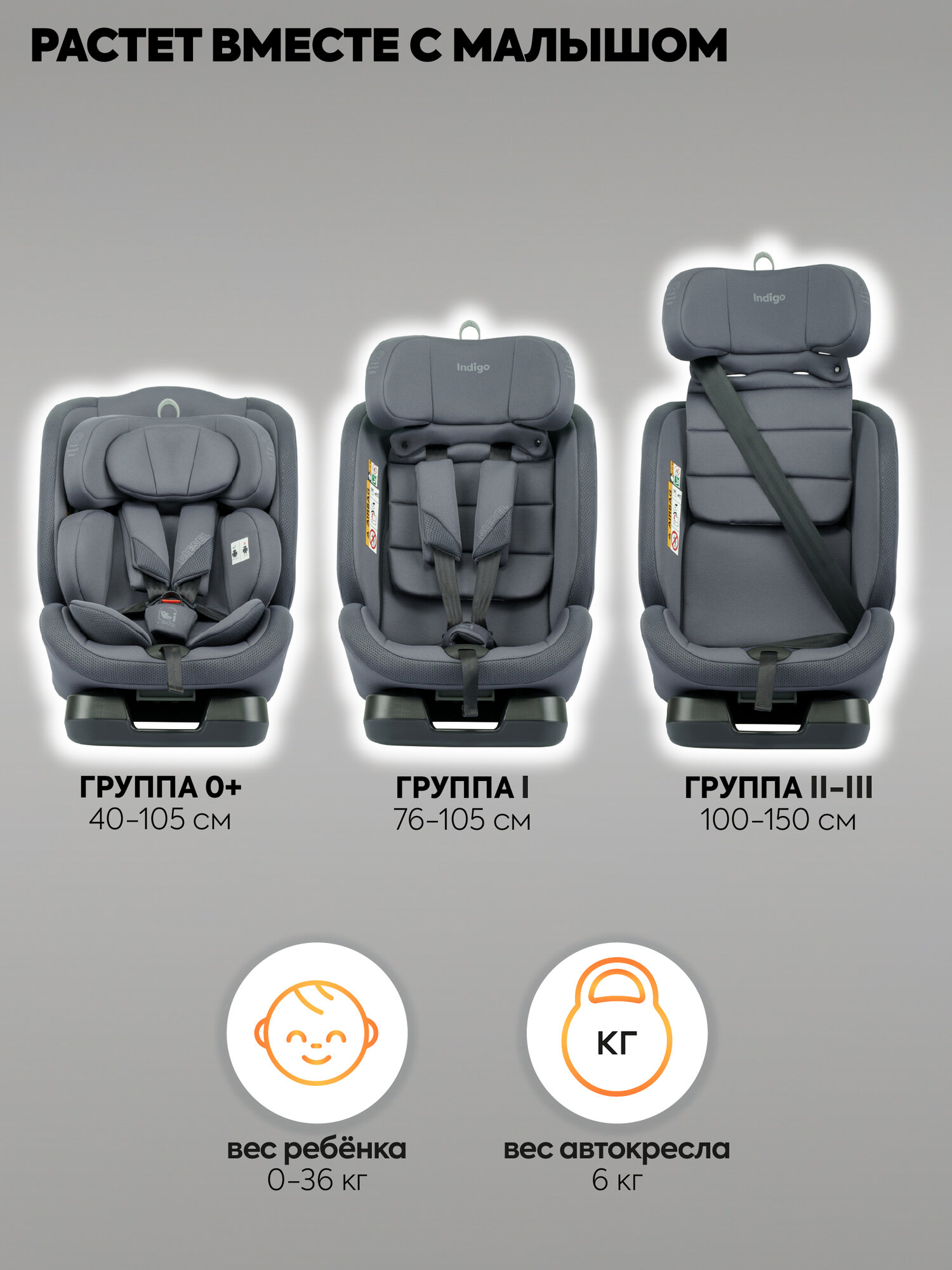 Детское автокресло Indigo Diesel I-SIZE, группа 0/1/2/3 (до 36 кг), до 12 лет, серый: сравнение цен, характеристики, фото, актуальное наличие и цены.