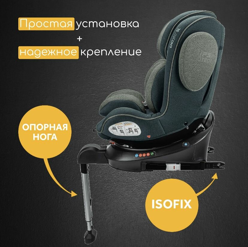 - ENO360 SL можно установить как при помощи штатного ремня автомобиля и ноги, так и при помощи ISOFIX и опорной ноги во всех возрастных группах.