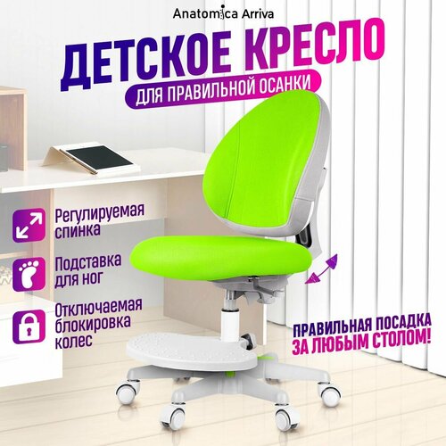 Кресло детское растущее Anatomica Arriva с подставкой для ног станет украшением детской комнаты! Ортопедическая спинка и анатомическое сиденье разработаны с учетом потребностей ребенка. Правильная посадка обеспечивает сохранность здоровья, в особенности зрения и осанки, и хорошую продуктивность работы. Благодаря возможности регулировки высоты, такое кресло прослужит минимум 5-6 лет, а широкие функциональные возможности и регулируемая подставка для ног позволит использовать кресло как для растущих, так и для обычных столов. Растущие кресла для ребенка - это вложение на длительный срок. Обтекаемый, современный дизайн, гипоаллергенные, прочные материалы - это кресло подходит для обучения вашего ребенка!