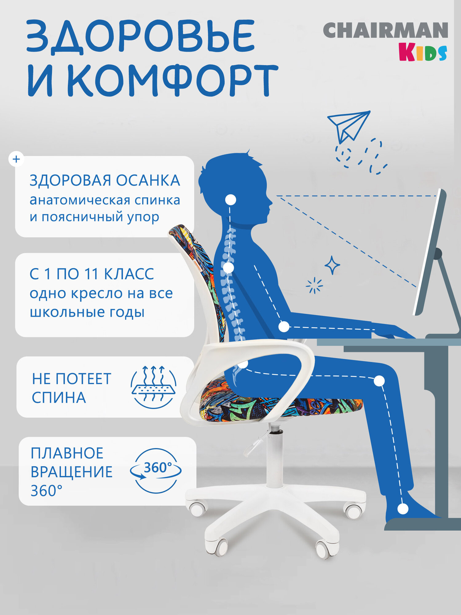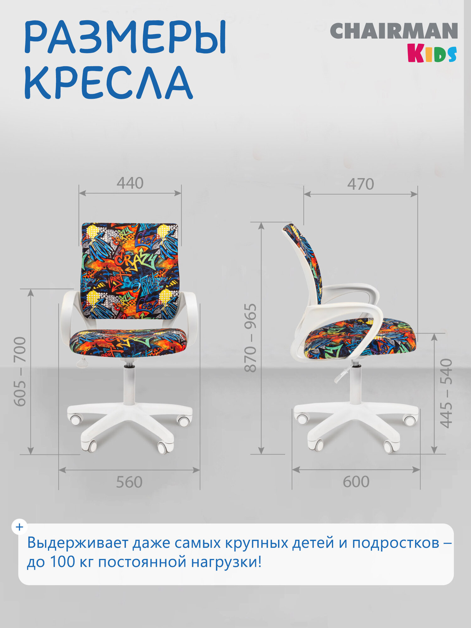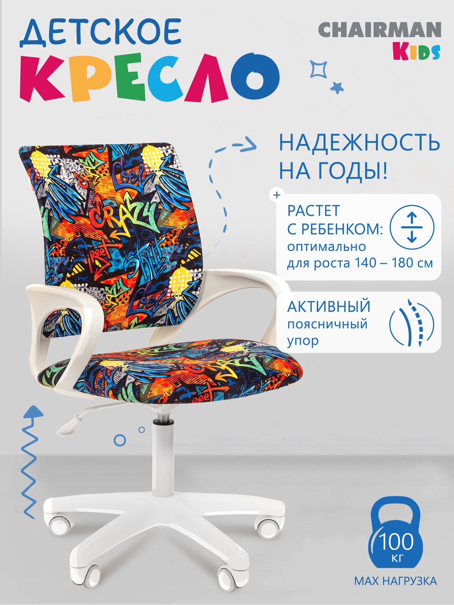 Белое детское компьютерное кресло CHAIRMAN KIDS 103 LT велюр, принт CRAZY стул школьника с подлокотниками: сравнение цен, характеристики, фото, актуальное наличие и цены.