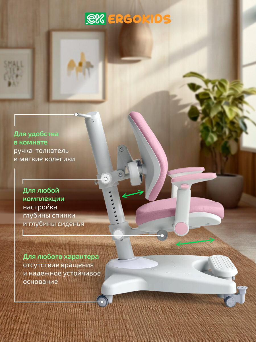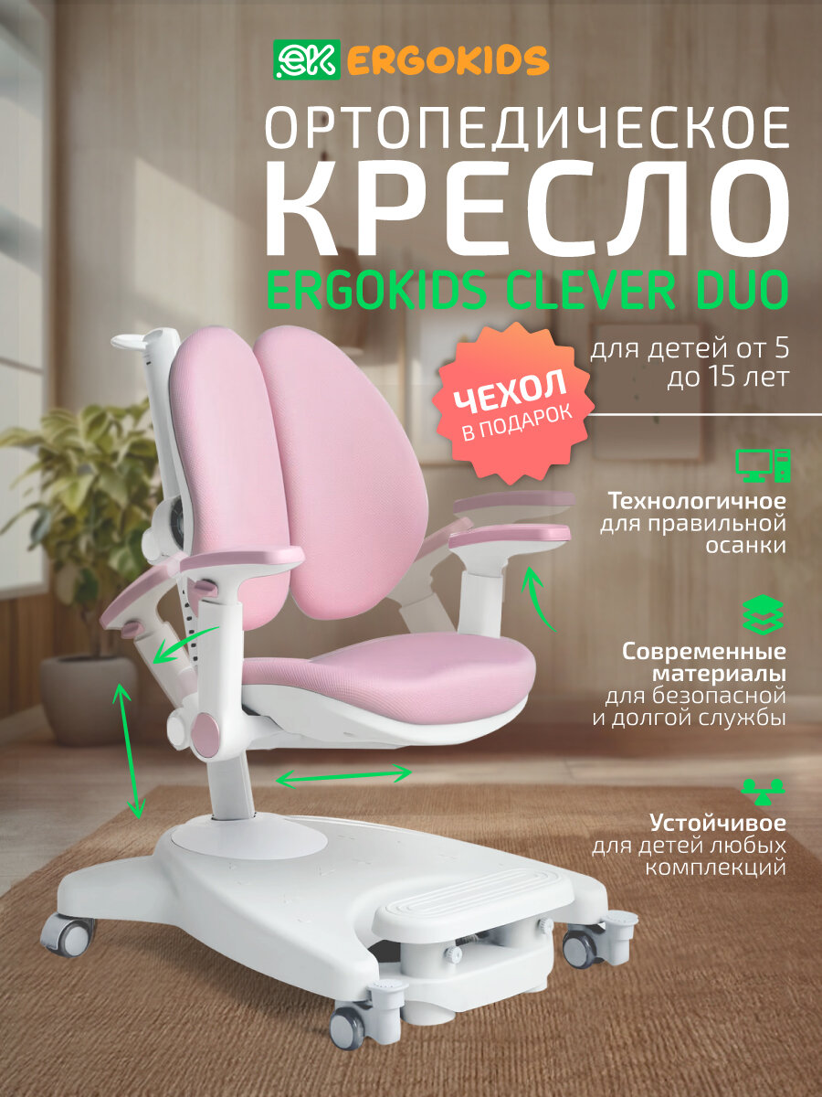 Купить Детское компьютерное кресло ErgoKids Clever Duo Pink (арт. Y-116 KP) с регулируемыми подлокотниками и подставкой для ног с доставкой по всей России.