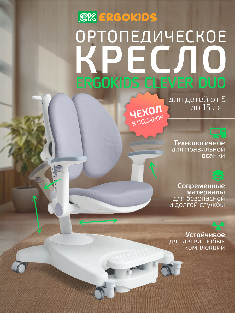 Купить Детское компьютерное кресло ErgoKids Clever Duo Grey (арт. Y-116 G) с регулируемыми подлокотниками и подставкой для ног с доставкой по всей России.
