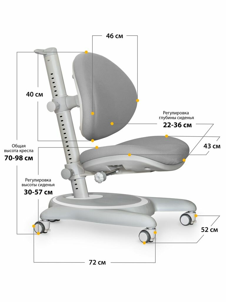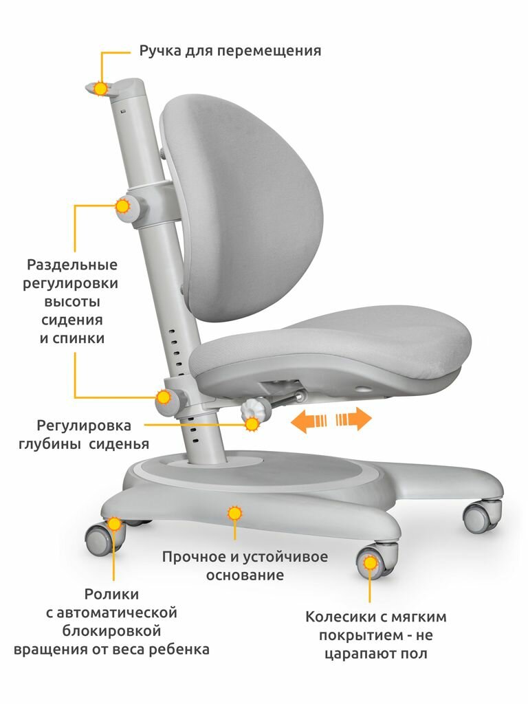 Глубина сиденья регулируется ручкой -фиксатором. Кресло подойдет для детей от 3х лет до взрослого возраста.