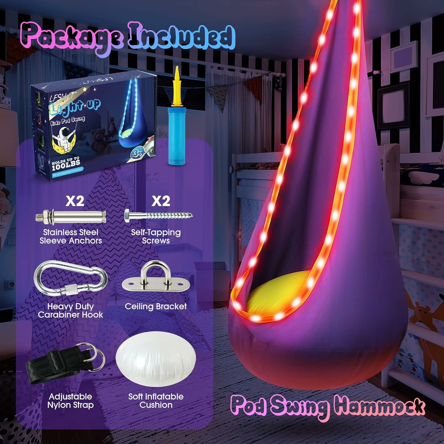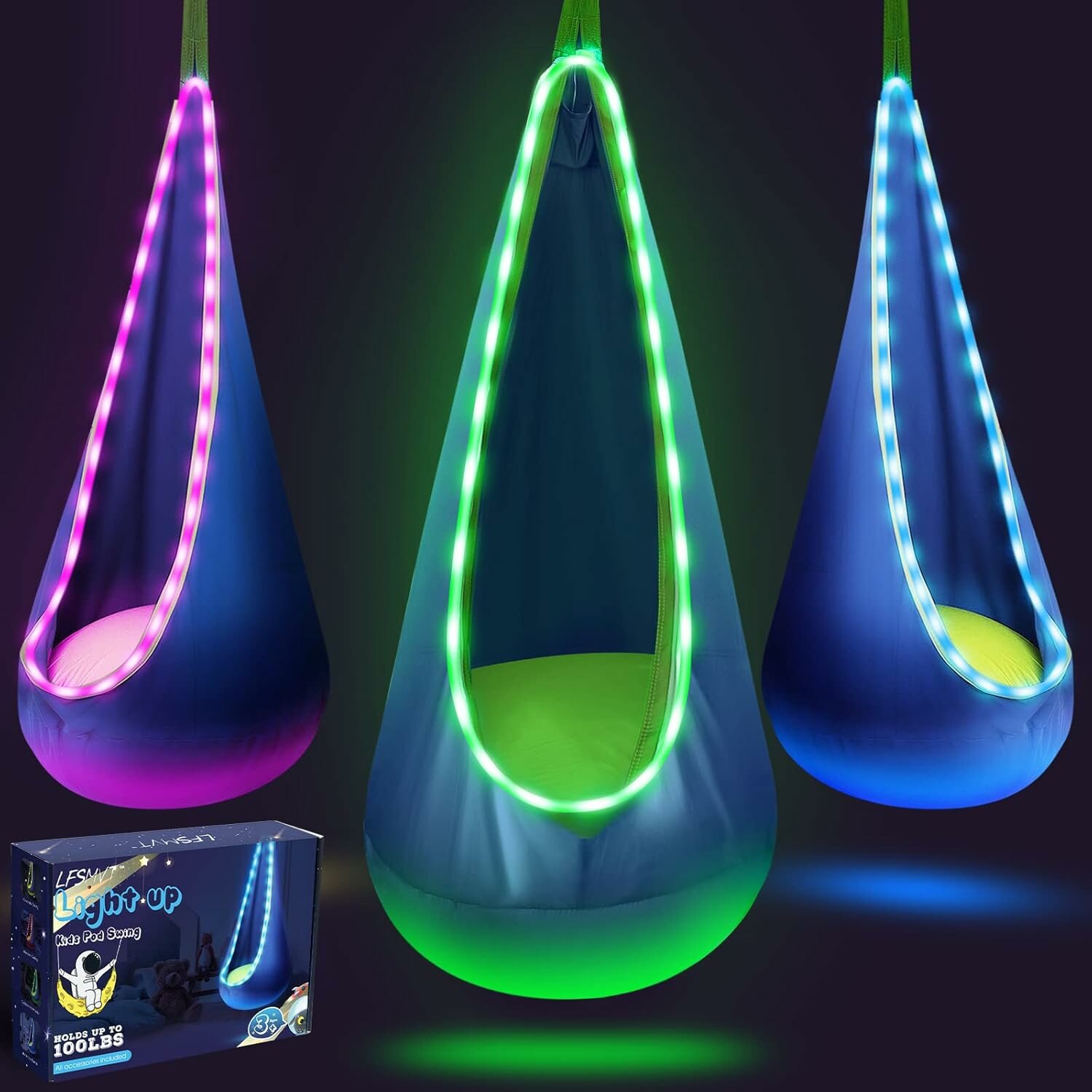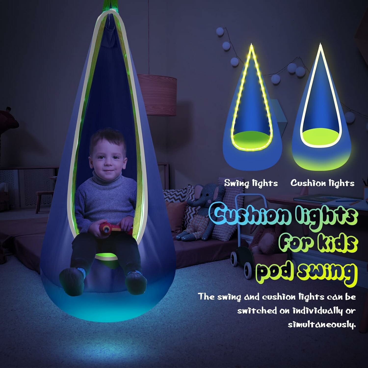 Детское кресло-качели подвесное с подсветкой, надувной подушкой и аксессуарами – для дома/у улицы, синее (1 шт.): сравнение цен, характеристики, фото, актуальное наличие и цены.