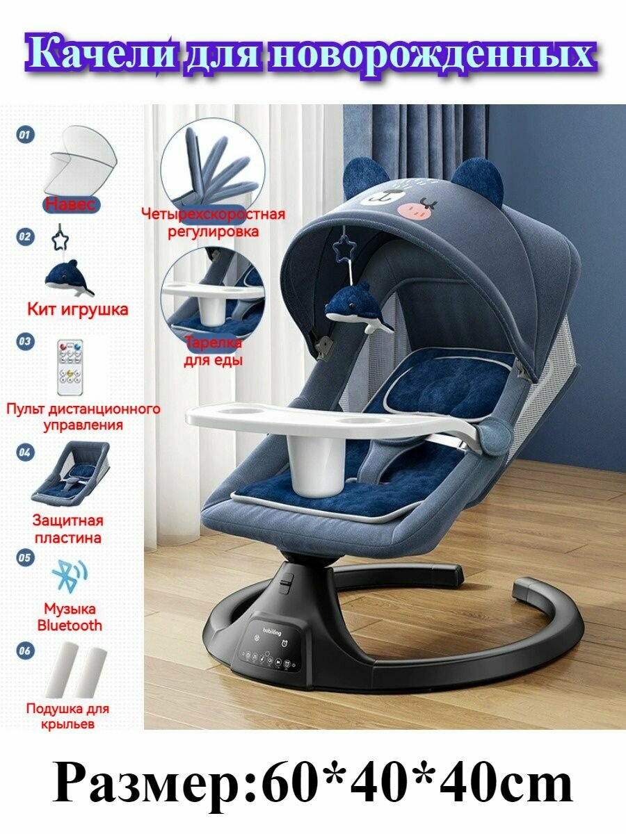 Купить Детское многофункциональное электрическое кресло-качалка Кресло — шезлонг,4-скоростное складывание, с ДУ и Bluetooth и Обеденный стол, Сетка от солнца, подголовник. с доставкой по всей России.