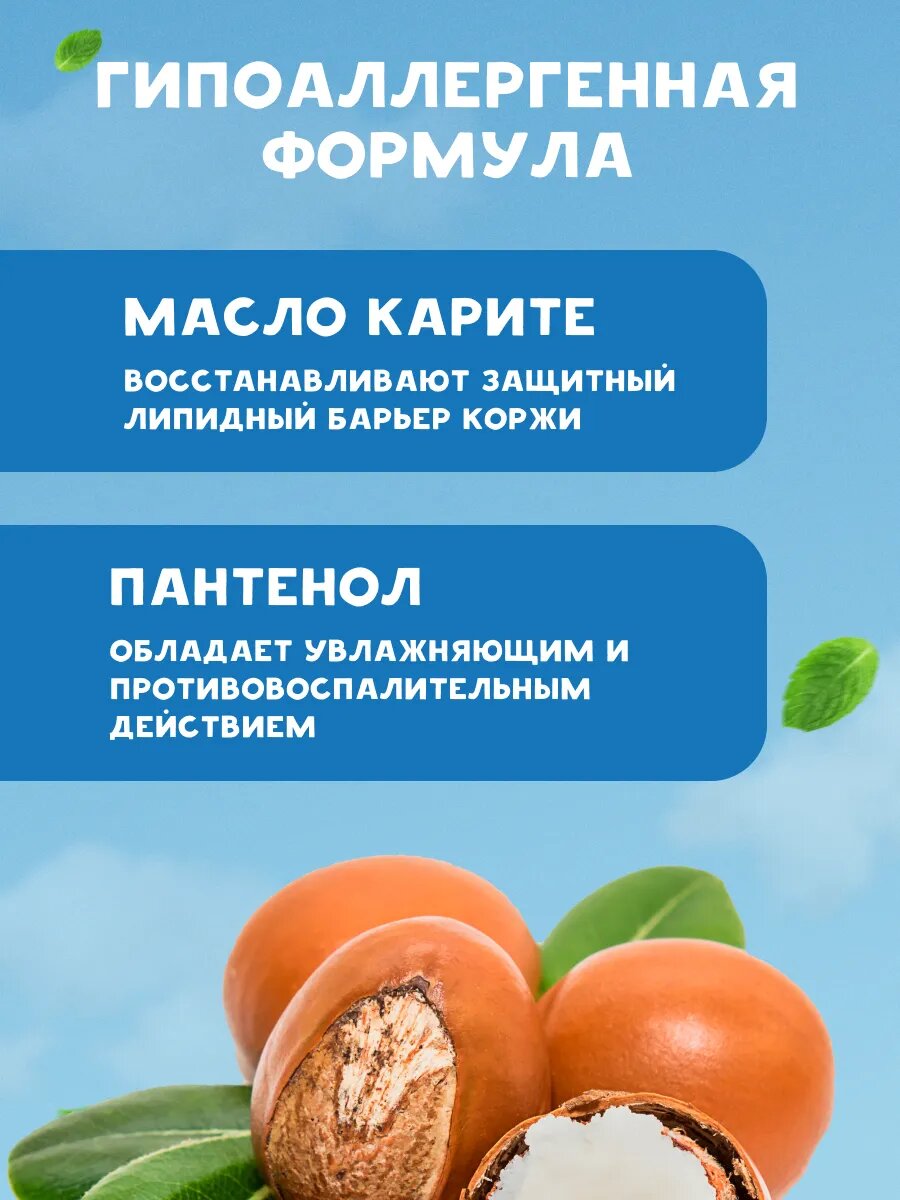 | Способ применения | вспеньте мыло в ладонях и нанесите мыльную пену на кожу ребенка, затем тщательно смойте теплой водой |