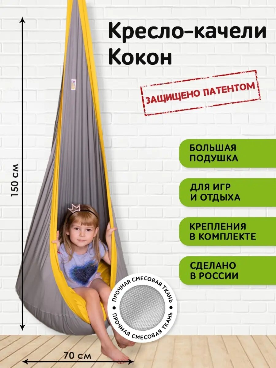 Детское подвесное кресло качели Кокон от бренда Покачайка, двухцветное, бескаркасное: сравнение цен, характеристики, фото, актуальное наличие и цены.