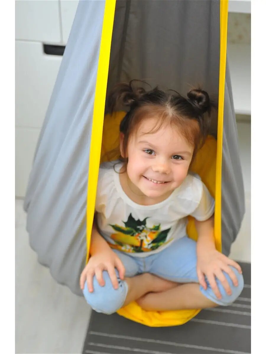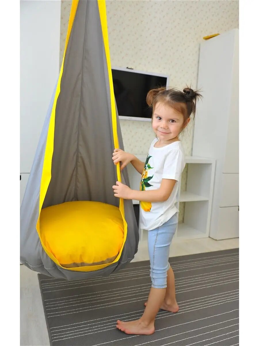 Детское подвесное кресло качели Кокон от бренда Покачайка, двухцветное, бескаркасное