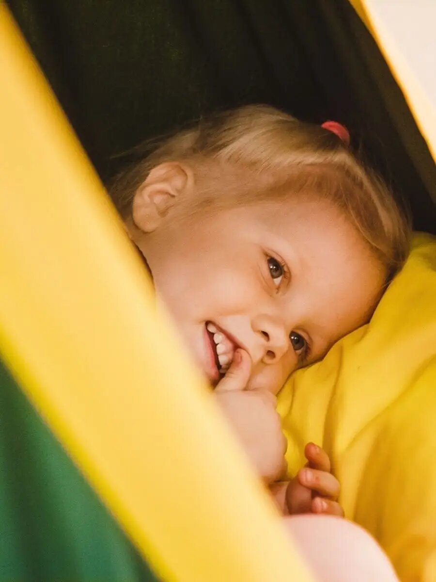 Детское подвесное кресло качели Кокон от бренда Покачайка, двухцветное, бескаркасное