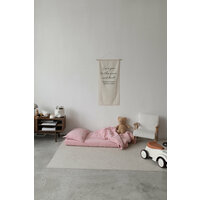 Детское постельное белье, комплект 120х60, муслин, 3 предмета, простыня на резинке, цвет горох на пудровом