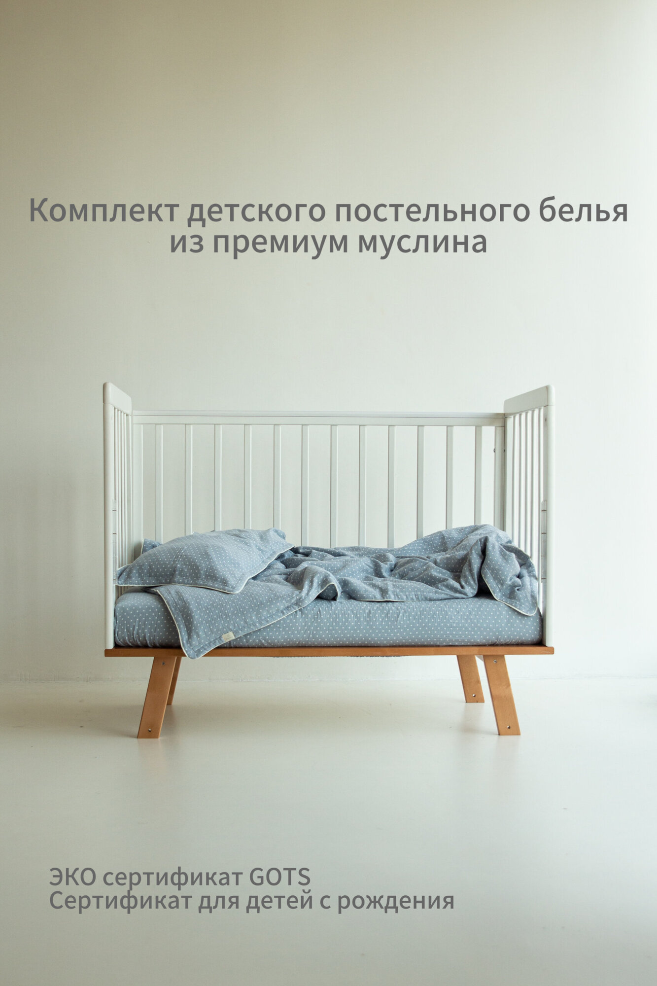 Комплекты стильного постельного белья из сертифицированного премиум муслина для детей с рождения и до трех лет.