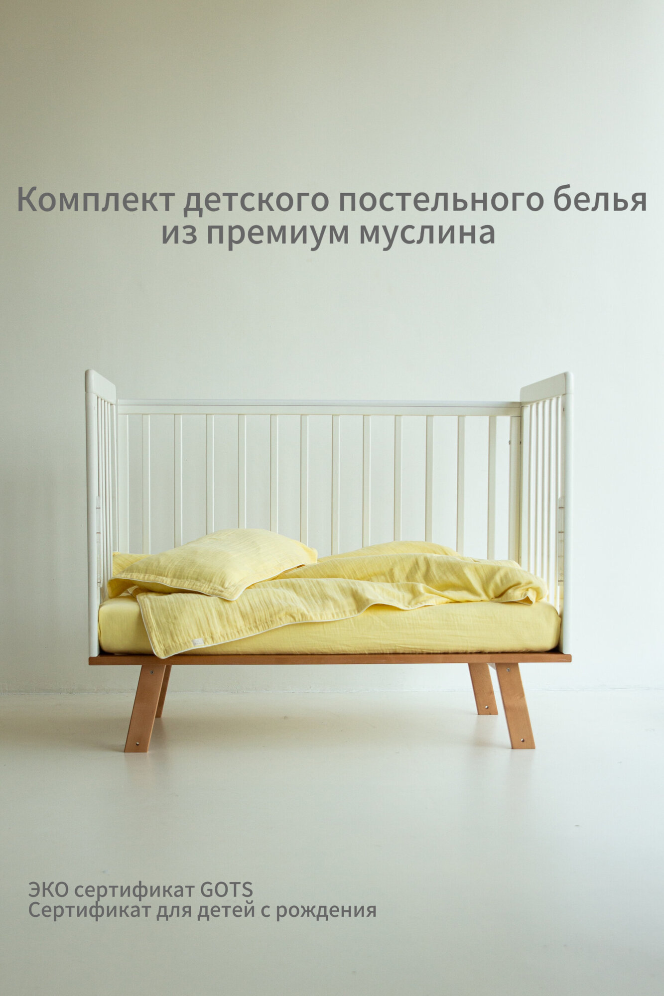 Детское постельное белье, комплект 120х60, муслин, 3 предмета, простыня на резинке, цвет лимонный: сравнение цен, характеристики, фото, актуальное наличие и цены.