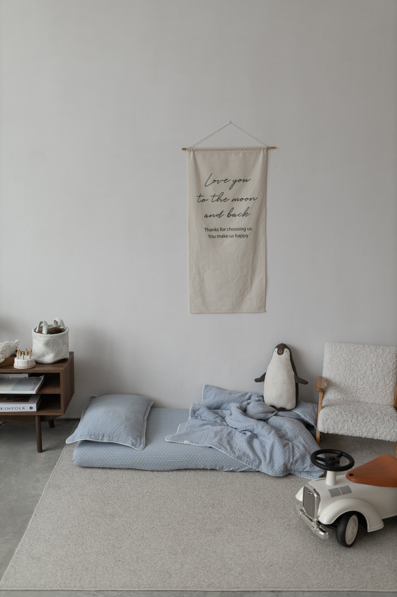 Детское постельное белье, комплект 140х70, муслин, 3 предмета, простыня на резинке, цвет горох на серо-голубом: сравнение цен, характеристики, фото, актуальное наличие и цены.