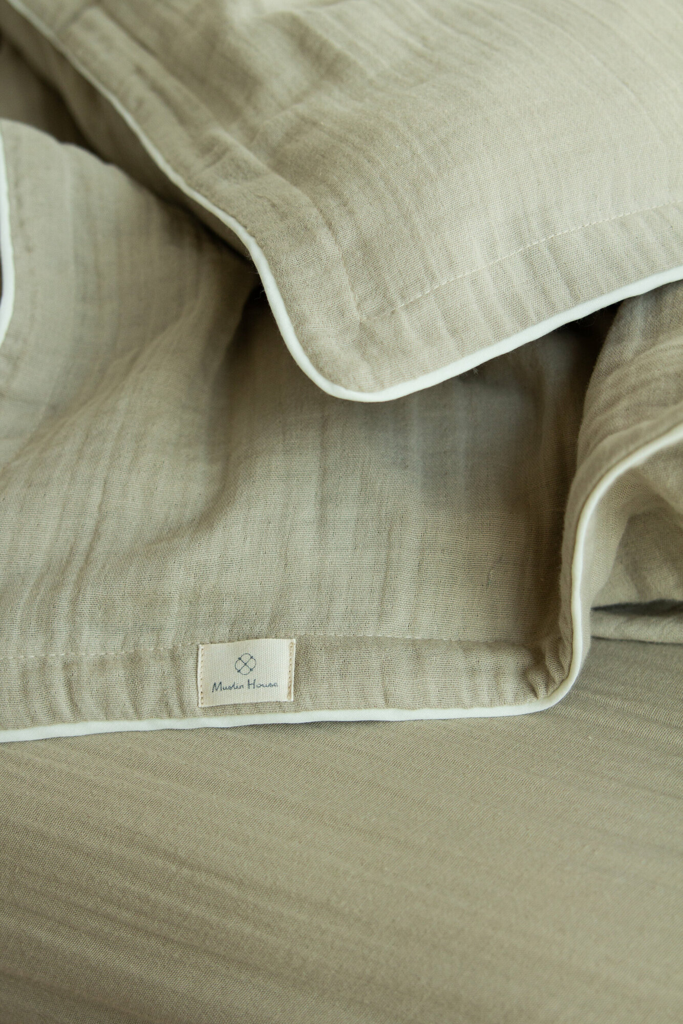 Двуслойный муслин имеет эко сертификат GOTS, а это значит, что белье пошито из 100% органического хлопка. Комплект очень прост в уходе: машинная стирка 40 градусов, деликатный отжим, а вот гладить и вовсе не нужно. Муслин от стирки к стирке будет только мягче и воздушнее.