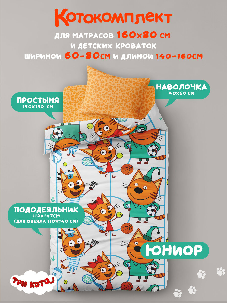 Детское постельное белье Василек юниор, Бязь, хлопок 100%, Три кота, Чемпионат: сравнение цен, характеристики, фото, актуальное наличие и цены.