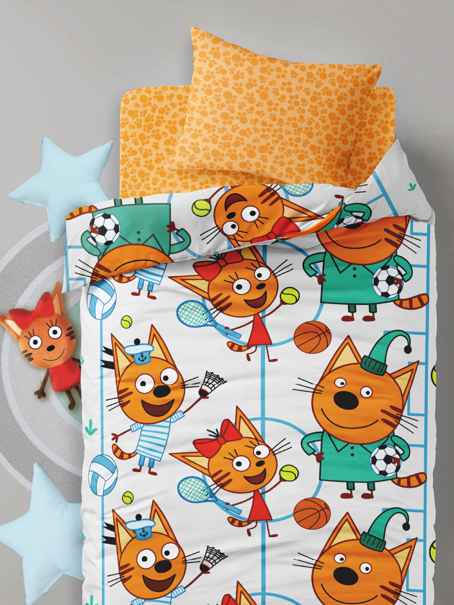 Купить Детское постельное белье Василек юниор, Бязь, хлопок 100%, Три кота, Чемпионат с доставкой по всей России.