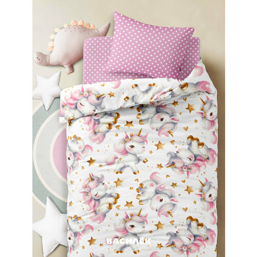 Постельное белье детское 160х80 из хлопковой ткани от ивановского бренда Василек. В набор Юниор входят: пододеяльник, простынь и наволочка. Материал – ткань поплин, в составе которой 100% хлопок. Ткань поплин нежная на ощупь, хорошо пропускает воздух, что позволяет малышу чувствовать себя комфортно во время сна, а красивые и яркие дизайны будут радовать его во время пробуждения. Уход за вещами простой – бережная стирка при температуре не более 40 градусов. Односпальный комплект в детскую кроватку - лучший подарок ребёнку. Красивый комплект для малыша, включающий в себя пододеяльник 147х112 см, простынь 190х150 см и наволочку 40х60 см, подойдет для кроватки в виде машинки, для кровати домика, для двухъярусной кровати, двухэтажной кровати на матрас 80х160 см и 70х160, подходит для прямоугольных матрасов, подойдет в овальную детскую кровать. Односпальное детское постельное белье 160 х 80 можно выбрать постельное белье в классических розовых и белых оттенках с веселыми и милыми единорогами, выполненное в красивых цветах, которое с первого взгляда отдает нежностью, позитивом и веселым настроением, обеспечит вашему ребенку крепкий сон, создаст спокойную легкую атмосферу и станет прекрасным подарком на день рождения. Подберите нежные и сочные цвета для вашей девочки. Мама непременно должна подарить такой высококачественный комплект для 1,5 спальной кроватки своему малышу. Холодная зима или жаркое лето, слякотная осень или солнечная весна – дарите радость себе и близким круглый год с постельным бельем от производителя ТДЛ текстиль из Иваново. Это нужная вещь в кроватку на весь год. Уважаемые покупатели! Пожалуйста, внимательно ознакомьтесь с правилами возврата приобретенного товара на площадке