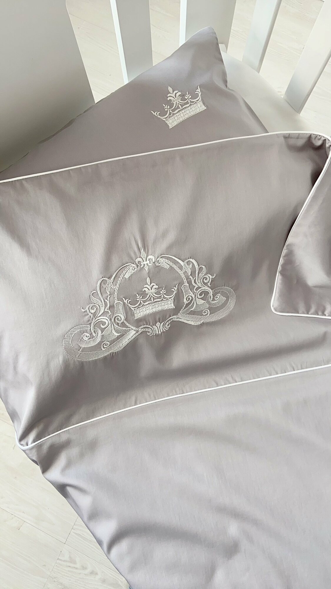 Купить Детский комплект постельного белья «Вдохновение» с вышивкой, сатин люкс, пододеяльник 110*140 см, наволочка 40*60 см, идеальный серый с доставкой по всей России.